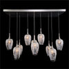 This ten-light, horizontal pendant chandelier with a finish of brushed nickel has handblown seeded glass gl...